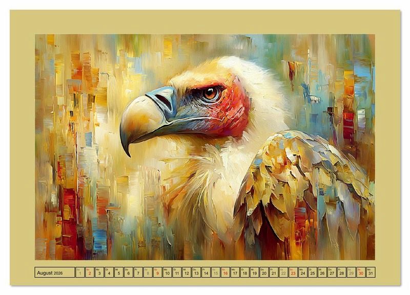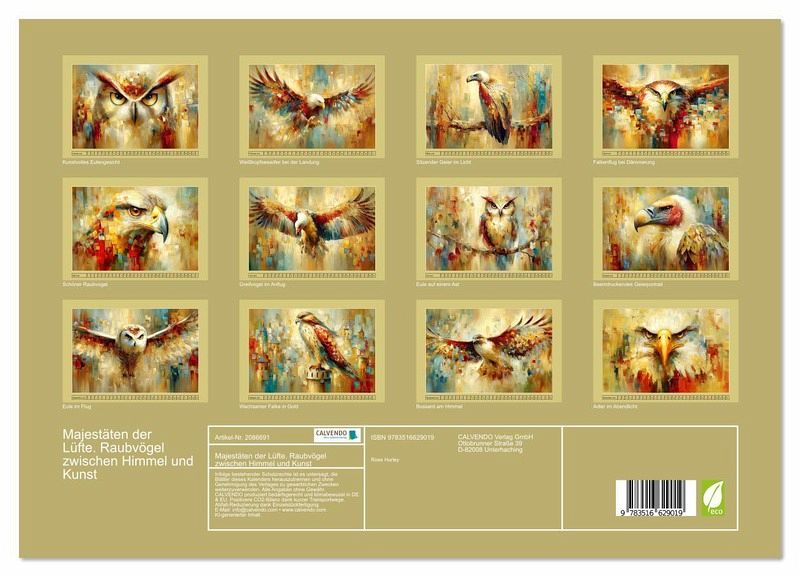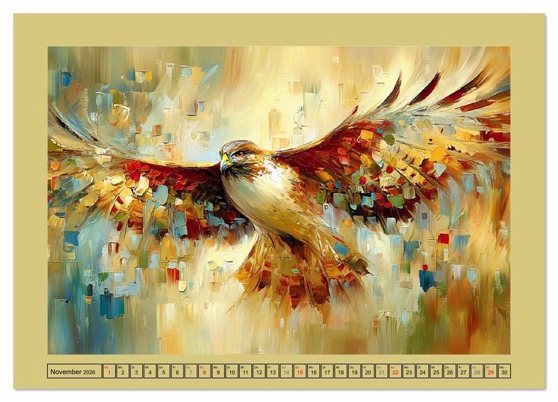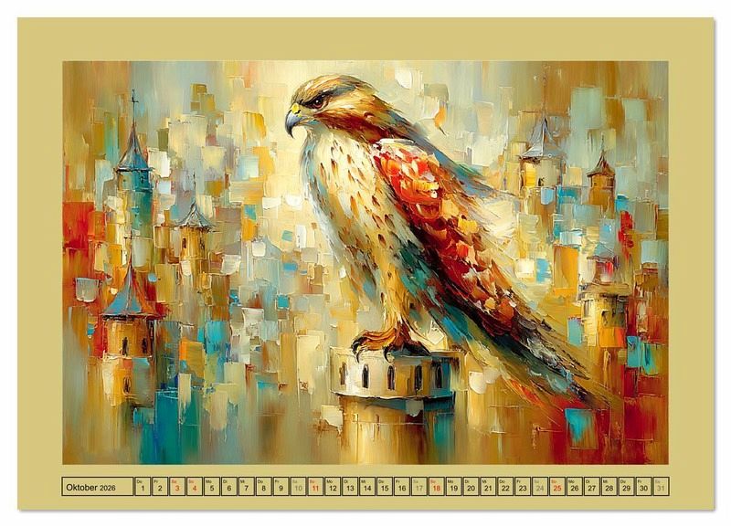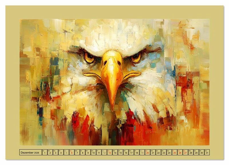 Dieser schöne Kalender vereint moderne Kunst mit der Eleganz majestätischer Greifvögel. In sanften Goldtönen und ansprechendem Ölgemälde-Stil erscheinen Adler, Falken, Bussarde, Geier und Eulen in eindrucksvoller Schönheit. Jedes Bild wurde mit der Hilfe von KI erstellt und zeigt die Anmut und Kraft dieser imposanten Tiere.