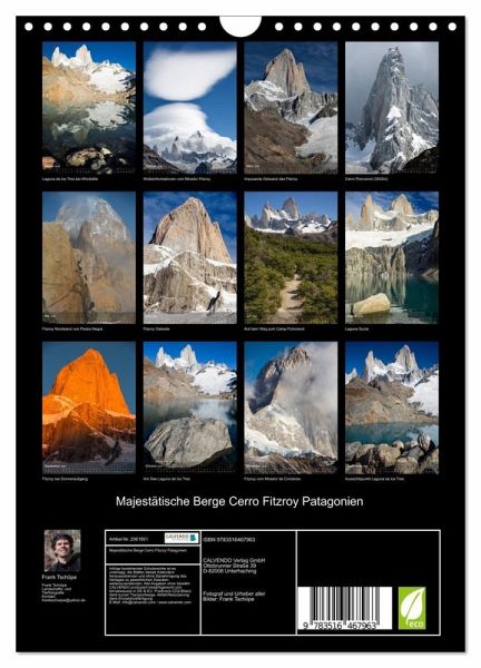 QUALITÄT - Hochwertiger Fotokalender mit 12 wunderschönen Motiven auf lichtbeständigem Bilderdruckpapier, robuste Spiralbindung mit Aufhängebügel.NACHHALTIG - deutliche Abfallreduzierung durch bedarfsgerechte Einzelstückfertigung, umweltfreundliches FSC-zertifiziertes Papier, Produktion in Deutschland, klimabewusste Logistik.PERFEKTES GESCHENK - Kalender für Freunde und Familie, für Kinder und Erwachsene, jung und alt, zu Weihnachten, Geburtstag oder zwischendurch.VIELFALT - Bildkalender in verschiedenen Formaten, z.B. DIN A5, DIN A4, DIN A3 sowie DIN A2. Ob Naturmotiv, Gemälde oder Fotos, ideal für ein persönliches Wohlfühlambiente.Einzigartige Bilder vom Cerro Fitzroy in Patagonien von Autor(in): Frank Tschöpe
