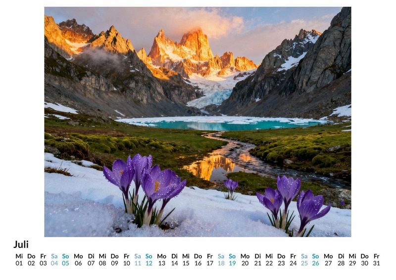 Es gibt Orte, die nur in der Vorstellung existieren, Gipfel, die das Licht auf eine Weise einfangen, die jenseits unserer Erfahrung liegt. Der Kalender "Majestätische Bergwelten" öffnet das Fenster zu genau solchen Szenerien. Er präsentiert monumentale Panoramen, die die raue Schönheit der Berge in einer neuen, dramatischen Form interpretieren. Dieser Kalender ist eine ausgezeichnete Wahl für: * Liebhaber von Bergpanoramen, die eine neue, fantastische Perspektive suchen. * Freunde von kunstvollen und fantasievollen Landschaftsdarstellungen. * Alle, die ihre Wände mit Motiven schmücken möchten, die zum Träumen anregen. Jeder Monat enthüllt eine Komposition aus schroffen Felsen, leuchtenden Himmeln und weiten Tälern, die in ihrer Perfektion fast unwirklich scheinen. Diese Landschaften wurden nicht auf Wanderungen entdeckt, sondern durch die Synthese unzähliger Impressionen und digitaler Kreativität zum Leben erweckt. Das Ergebnis sind zwölf Visionen von Gebirgen, wie sie sein könnten: wild, unberührt und von einer erhabenen Ruhe erfüllt. Beim Kauf dieses Kalenders kann man Folgendes erwarten: * Zwölf einzigartige Monatsmotive idealisierter Gebirgswelten. * Ein klares Kalendarium für die Planung von Terminen. * Ein Wandkalender, dessen Format die Motive großflächig präsentiert. Der Kalender "Majestätische Bergwelten" ist eine Reise zu Gipfeln, die der Fantasie entsprungen sind. Eine Einladung, jeden Monat eine neue, monumentale Landschaft zu entdecken und sich von ihrer Kraft inspirieren zu lassen.