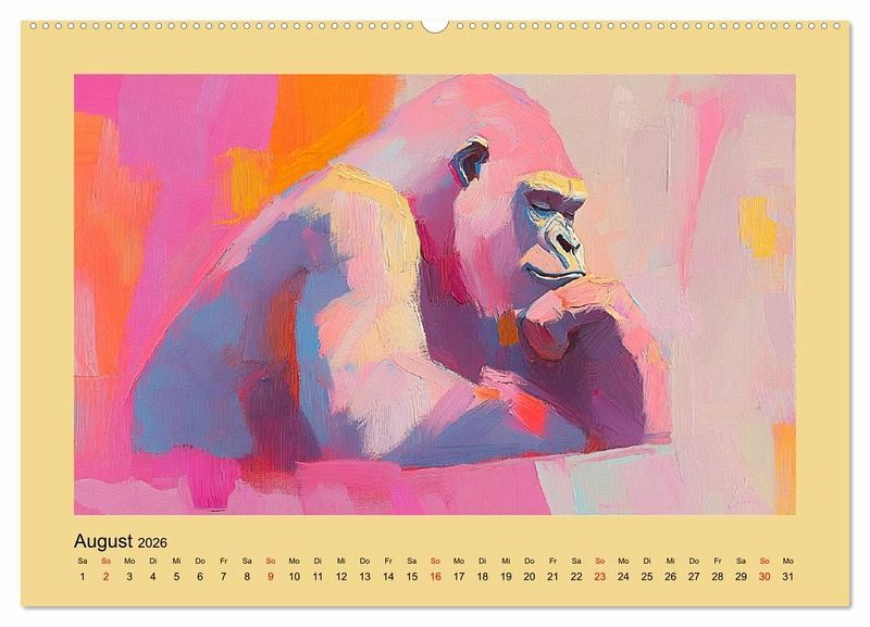 Dieser Kalender präsentiert eindrucksvolle Kunstwerke von Menschenaffen im Stil klassischer Ölgemälde. Jede Illustration wurde mit Hilfe von KI erstellt und fängt die Schönheit, Würde und Emotion dieser faszinierenden Tiere ein. Die leuchtenden Farben, weichen Pinselstriche und kunstvollen Lichtspiele verleihen den Bildern eine besondere Tiefe. Ein ästhetisches und inspirierendes Kunstwerk für Tierliebhaber und Kunstfreunde.