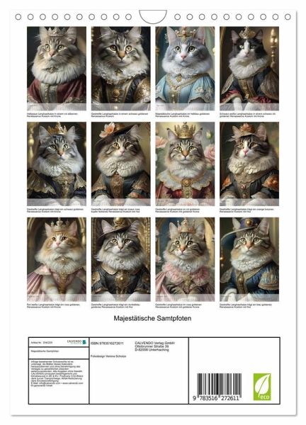 QUALITÄT - Hochwertiger Fotokalender mit 12 wunderschönen Motiven auf lichtbeständigem Bilderdruckpapier, robuste Spiralbindung mit Aufhängebügel.NACHHALTIG - deutliche Abfallreduzierung durch bedarfsgerechte Einzelstückfertigung, umweltfreundliches FSC-zertifiziertes Papier, Produktion in Deutschland, klimabewusste Logistik.PERFEKTES GESCHENK - Kalender für Freunde und Familie, für Kinder und Erwachsene, jung und alt, zu Weihnachten, Geburtstag oder zwischendurch.VIELFALT - Bildkalender in verschiedenen Formaten, z.B. DIN A5, DIN A4, DIN A3 sowie DIN A2. Ob Naturmotiv, Gemälde oder Fotos, ideal für ein persönliches Wohlfühlambiente.Königliche Katzenportrait von Autor(in): Fotodesign Verena Scholze