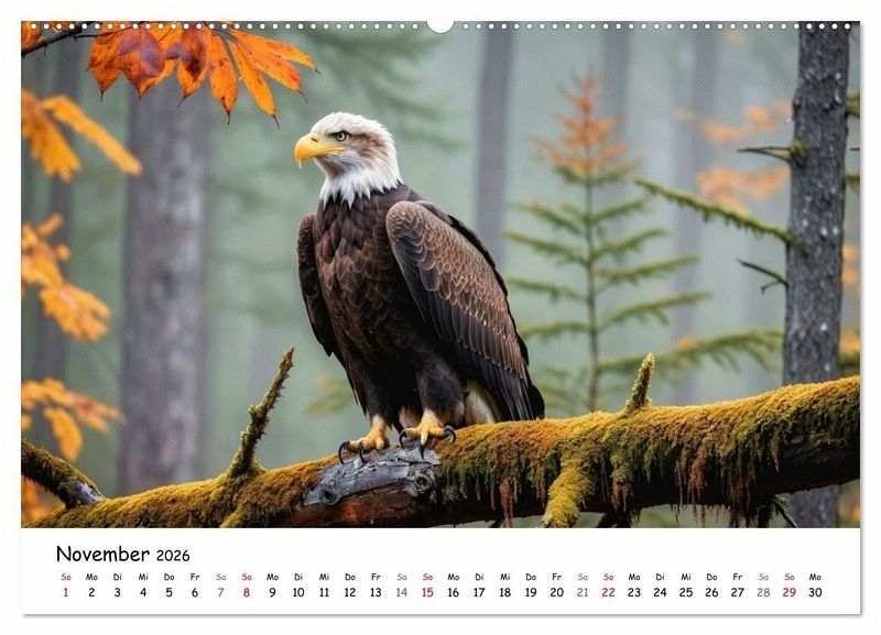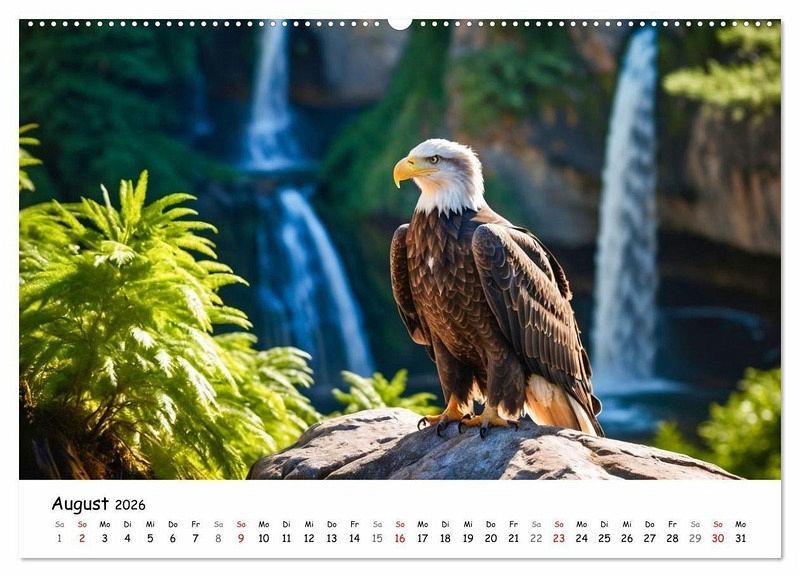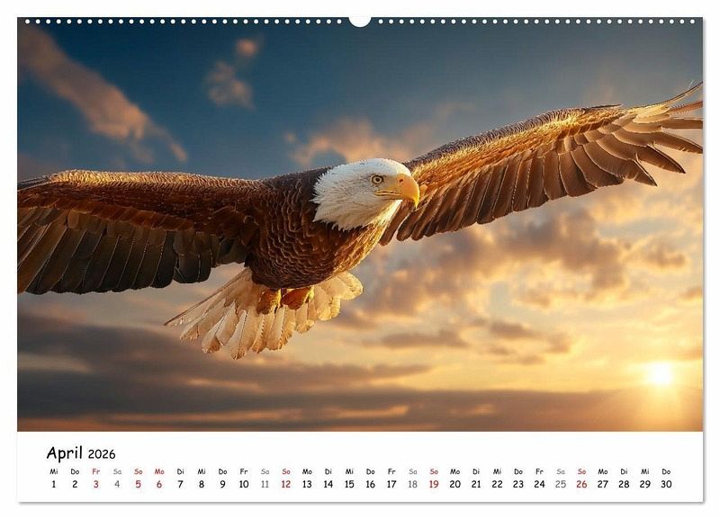 Majestätische Weißkopfseeadler faszinieren seit jeher als Symbol für Freiheit, Stärke und Schönheit. Dieser Vogelkalender präsentiert eindrucksvolle Adler-Bilder, die die ganze Pracht dieses einzigartigen Greifvogels zeigen. Ob im Flug mit ausgebreiteten Schwingen, beim Jagen, Ruhen oder im direkten Blick - jedes Bild fängt die besondere Ausstrahlung des Königs der Lüfte ein. Die Aufnahmen spiegeln die Kraft und Eleganz wider, die den Weißkopfseeadler so unverwechselbar machen. Ideal für Naturfreunde, Vogelliebhaber und alle, die beeindruckende Tierfotografie schätzen. Als Geschenk oder für die eigene Wand bringt der Kalender die Faszination dieser Raubvögel in jedes Zuhause. Ein hochwertiges Produkt, das Natur und Wildnis Monat für Monat lebendig werden lässt. Bilder mit KI generiert.