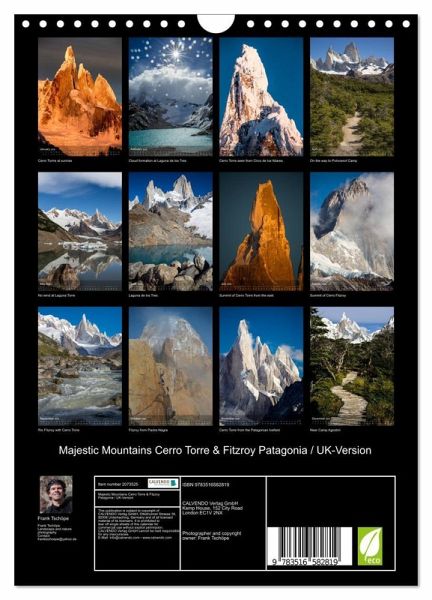 QUALITY - High-quality photo calendar with 12 beautiful images on light-resistant paper, robust spiral binding with hanger.SUSTAINABLE - Significant waste reduction due to print-on-demand production, environmentally friendly FSC-certified paper, produced in the UK, climate-conscious logistical processes.PERFECT GIFT - calendars for friends and family, for children, all agesand all occasions, from Christmas to birthdays and everything in between.LOTS OF CHOICE - Wall calendars in different sizes (DIN A4 and DIN A3), for any topic and personal taste, featuring photography, painting and illustrations.A selection of unique pictures from Cerro Torre and Cerro Fitzroy, author: Frank Tschöpe