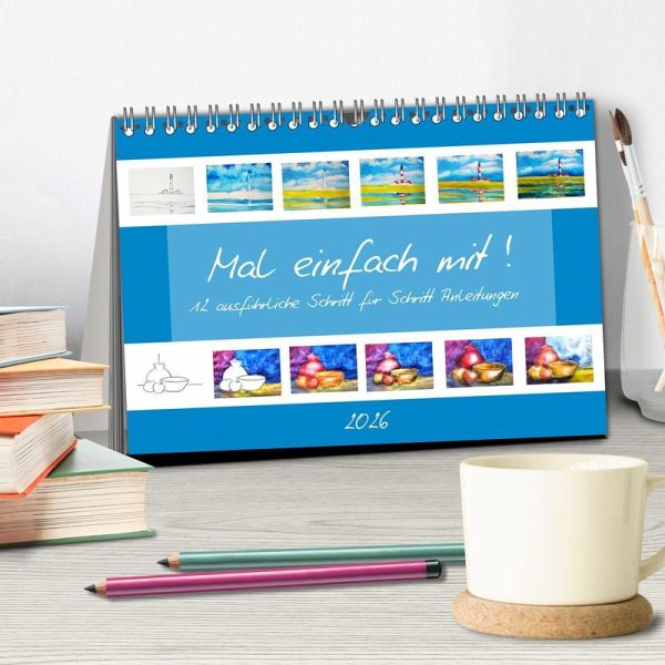 "Mal einfach mit" ist eine Einladung für alle Menschen, die "einfach nur Lust zum Malen haben" und vielleicht nicht recht wissen, wie sie anfangen sollen. Die schrittweise angeleiteten Bilder des Kalenders sind so konzipiert, dass auch ein absoluter Anfänger ein ansehnliches Ergebnis erzielen wird!
