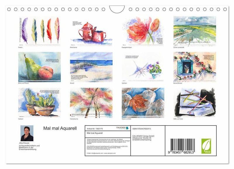 QUALITÄT - Hochwertiger Fotokalender mit 12 wunderschönen Motiven auf lichtbeständigem Bilderdruckpapier, robuste Spiralbindung mit Aufhängebügel.NACHHALTIG - deutliche Abfallreduzierung durch bedarfsgerechte Einzelstückfertigung, umweltfreundliches FSC-zertifiziertes Papier, Produktion in Deutschland, klimabewusste Logistik.PERFEKTES GESCHENK - Kalender für Freunde und Familie, für Kinder und Erwachsene, jung und alt, zu Weihnachten, Geburtstag oder zwischendurch.VIELFALT - Bildkalender in verschiedenen Formaten, z.B. DIN A5, DIN A4, DIN A3 sowie DIN A2. Ob Naturmotiv, Gemälde oder Fotos, ideal für ein persönliches Wohlfühlambiente.Einfache Aquarellgemälde zur Inspiration von Autor(in): Jitka Krause