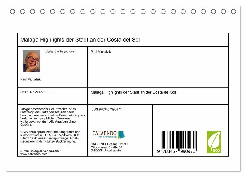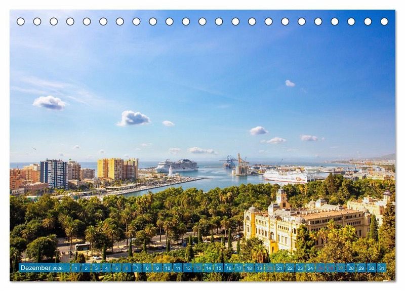 Lassen Sie sich Monat für Monat von der Schönheit Malagas verzaubern! Dieser exklusive Kalender nimmt Sie mit auf eine visuelle Reise durch die malerischen Küsten, lebhaften Stadtviertel und historischen Sehenswürdigkeiten. Erleben Sie die reiche Kultur und das mediterrane Lebensgefühl dieser traumhaften Stadt.