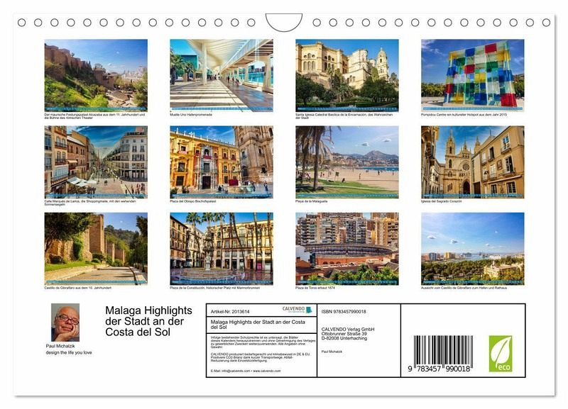 Lassen Sie sich Monat für Monat von der Schönheit Malagas verzaubern! Dieser exklusive Kalender nimmt Sie mit auf eine visuelle Reise durch die malerischen Küsten, lebhaften Stadtviertel und historischen Sehenswürdigkeiten. Erleben Sie die reiche Kultur und das mediterrane Lebensgefühl dieser traumhaften Stadt.