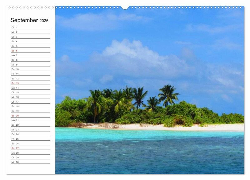 Die Malediven gelten als das Traum-Reiseziel überhaupt. Die traumhafte Landschaft mit endlosen, strahlend-weißen und feinsandigen Stränden und die bezaubernde Unterwasserwelt mit farbenprächtigen Fischen laden zum Erholen und Tauchen ein. Ein Kalender der die Sehnsucht nach Urlaub und dem verlorenen Paradies in uns weckt.