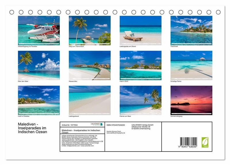 QUALITÄT - Hochwertiger Fotokalender mit 12 wunderschönen Motiven auf lichtbeständigem Bilderdruckpapier, robuste Spiralbindung.NACHHALTIG - deutliche Abfallreduzierung durch bedarfsgerechte Einzelstückfertigung, umweltfreundliches FSC-zertifiziertes Papier, Produktion in Deutschland, klimabewusste Logistik.PERFEKTES GESCHENK - Kalender für Freunde und Familie, für Kinder und Erwachsene, jung und alt, zu Weihnachten, Geburtstag oder zwischendurch.VIELFALT - Bildkalender in verschiedenen Formaten, z.B. DIN A5, DIN A4, DIN A3 sowie DIN A2. Ob Naturmotiv, Gemälde oder Fotos, ideal für ein persönliches Wohlfühlambiente.Einzigartige Fotografien der Malediven laden zum Träumen ein von Autor(in): Sandra Simone Flach / Schmitt