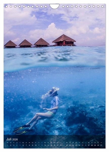 Dieser Kalender enthält 12 meisterliche Fotografien der himmlischen Malediven. Es wird sowohl die Schönheit der paradiesischen Inseln, als auch deren Unterwasserwelt gezeigt. Lassen Sie sich durch die Aufnahmen verwöhnen. Ein Blickfang für Zuhause oder das Büro.