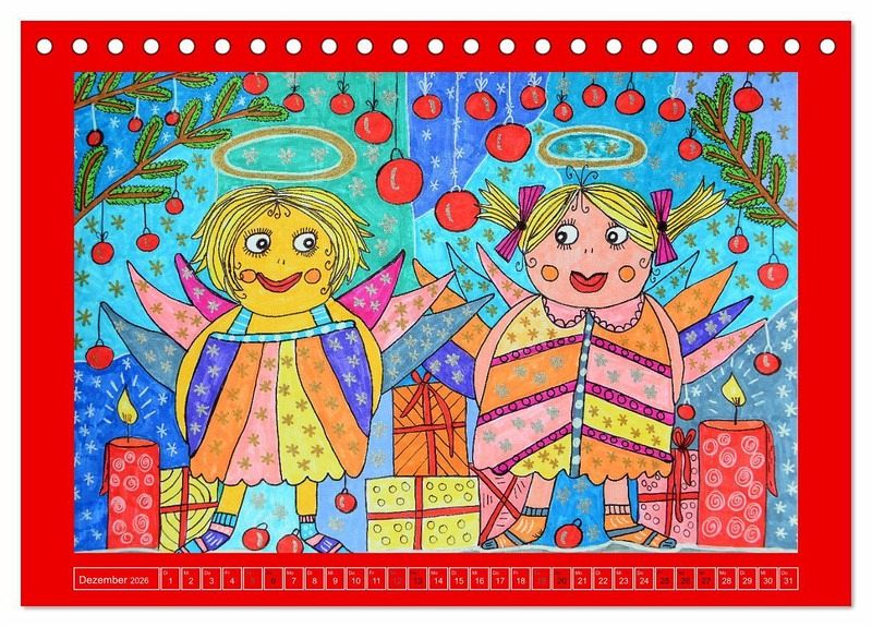 Dezember: Zwei Weihnachtsengel mit Geschenken