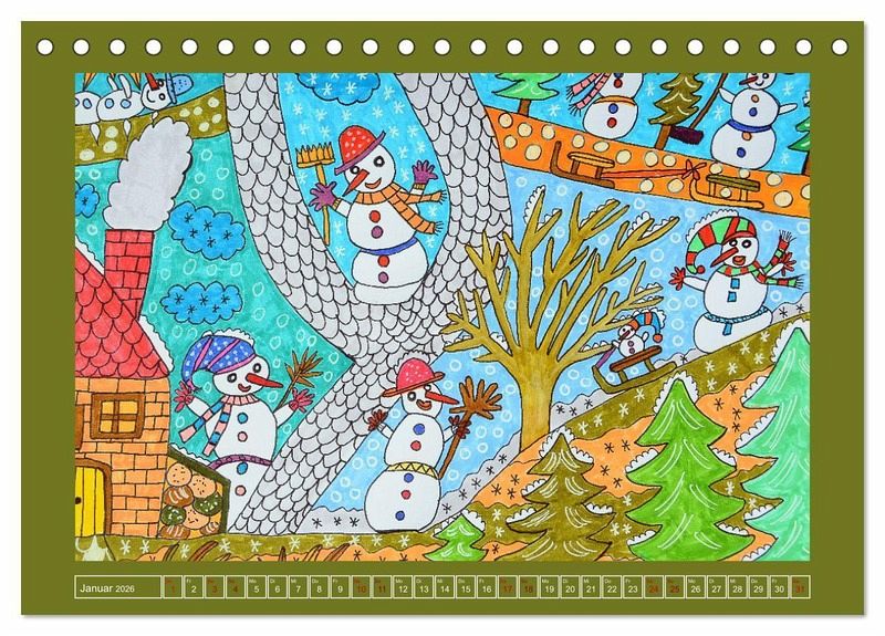 Januar: Winterszene, Schneemänner