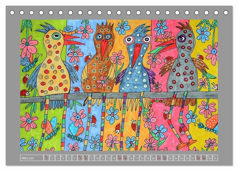 März: Vier bunte Vögel