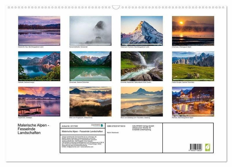 QUALITÄT - Hochwertiger Fotokalender mit 12 wunderschönen Motiven auf lichtbeständigem Bilderdruckpapier, robuste Spiralbindung mit Aufhängebügel.NACHHALTIG - deutliche Abfallreduzierung durch bedarfsgerechte Einzelstückfertigung, umweltfreundliches FSC-zertifiziertes Papier, Produktion in Deutschland, klimabewusste Logistik.PERFEKTES GESCHENK - Kalender für Freunde und Familie, für Kinder und Erwachsene, jung und alt, zu Weihnachten, Geburtstag oder zwischendurch.VIELFALT - Bildkalender in verschiedenen Formaten, z.B. DIN A5, DIN A4, DIN A3 sowie DIN A2. Ob Naturmotiv, Gemälde oder Fotos, ideal für ein persönliches Wohlfühlambiente.Ein Jahr fesselnde Landschaften aus den Alpen von Autor(in): Martin Wasilewski