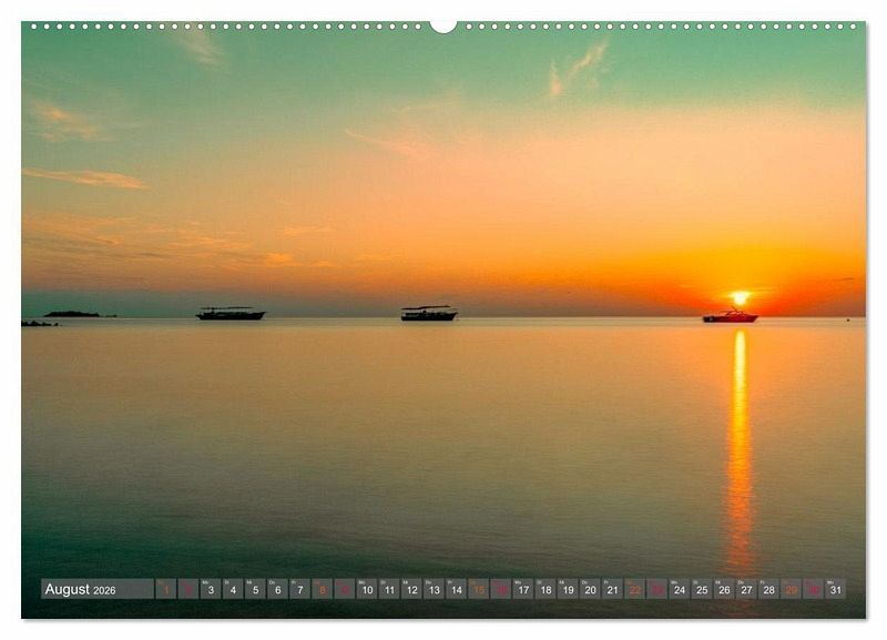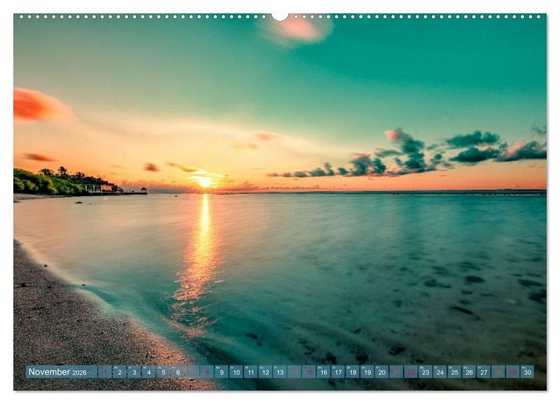Ob schimmerndes Türkis in der Morgensonne, romantische Sonnenuntergänge über dem Indischen Ozean oder die sanfte Eleganz der palmengesäumten Strände - "Malerische Malediven" bringt tropische Träume in Ihren Alltag.