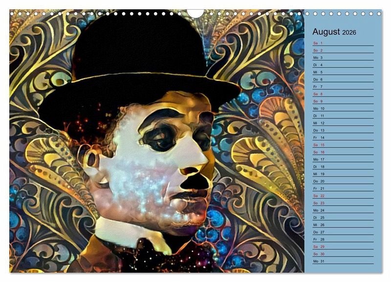 QUALITÄT - Hochwertiger Fotokalender mit 12 wunderschönen Motiven auf lichtbeständigem Bilderdruckpapier, robuste Spiralbindung mit Aufhängebügel.NACHHALTIG - deutliche Abfallreduzierung durch bedarfsgerechte Einzelstückfertigung, umweltfreundliches FSC-zertifiziertes Papier, Produktion in Deutschland, klimabewusste Logistik.PERFEKTES GESCHENK - Kalender für Freunde und Familie, für Kinder und Erwachsene, jung und alt, zu Weihnachten, Geburtstag oder zwischendurch.VIELFALT - Bildkalender in verschiedenen Formaten, z.B. DIN A5, DIN A4, DIN A3 sowie DINA2. Ob Naturmotiv, Gemälde oder Fotos, ideal für ein persönliches Wohlfühlambiente.Digital gemalte Portraits berühmter Schauspieler der Stummfilmära in abstrakter, farbenfroher Bearbeitung. von Autor(in): Garrulus glandarius