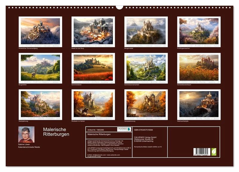 Sie faszinieren uns immer wieder, die romantischen Burgen. Erbaut wurden Burgen meist im Mittelalter auf Hügeln und Bergen, somit weit sichtbar für jedermann. Die Autorin nimmt Sie mit auf eine Reise in die Vergangenheit. Erfreuen Sie sich jeden Monat an einer zauberhaften Burg in fantasievoller, jahreszeitlich passender Landschaft. Die Bilder wurden mithilfe von KI erstellt.