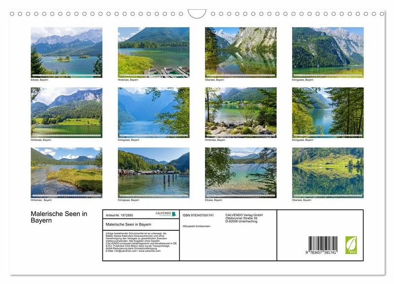 Bayern ist bekannt für seine wunderschönen Seen, die wahre Naturparadiese sind. Der Eibsee, Königssee, Obersee und Hintersee bieten atemberaubende Farben, Spiegelungen und Panoramen, die jeden Naturfreund begeistern werden. Als perfekte Kulisse dienen die majestätischen Bergmassive der Alpen. Der Kalender nimmt Sie mit auf eine Bilderreise zum Träumen!