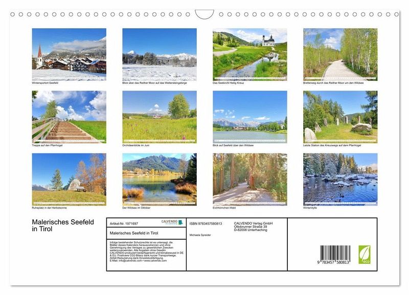 QUALITÄT - Hochwertiger Fotokalender mit 12 wunderschönen Motiven auf lichtbeständigem Bilderdruckpapier, robuste Spiralbindung mit Aufhängebügel.NACHHALTIG - deutliche Abfallreduzierung durch bedarfsgerechte Einzelstückfertigung, umweltfreundliches FSC-zertifiziertes Papier, Produktion in Deutschland, klimabewusste Logistik.PERFEKTES GESCHENK - Kalender für Freunde und Familie, für Kinder und Erwachsene, jung und alt,zu Weihnachten, Geburtstag oder zwischendurch.VIELFALT - Bildkalender in verschiedenen Formaten, z.B. DIN A5, DIN A4, DIN A3 sowie DIN A2. Ob Naturmotiv, Gemälde oder Fotos, ideal für ein persönliches Wohlfühlambiente.Die Olympiaregion Seefeld im Jahresverlauf von Autor(in): Michaela Spreider