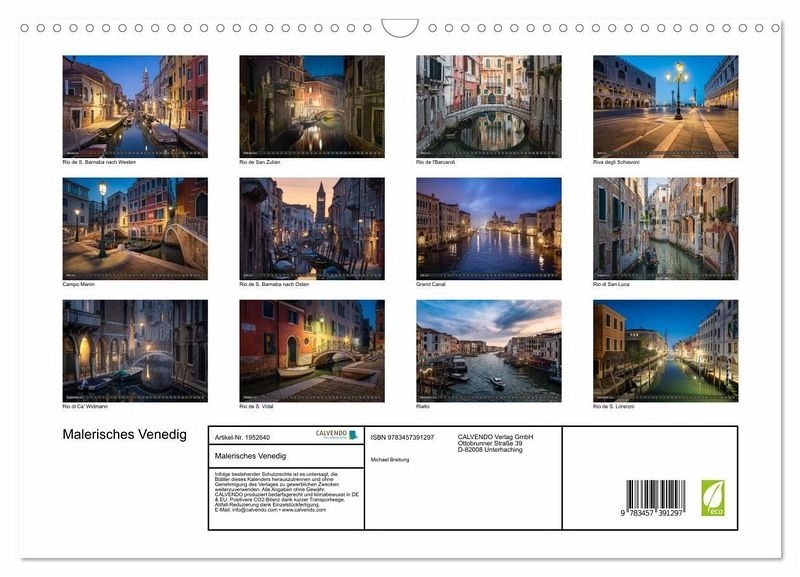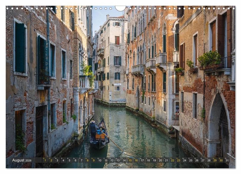 Von der majestätischen Riva degli Schiavoni bis zu den verwunschenen Wasserwegen - entdecken Sie die Vielfalt und den Charme Venedigs jeden Monat aufs Neue. Ideal als Geschenk für Venedig-Liebhaber, Reisefans und Kunstfreunde, oder zur Verschönerung Ihrer eigenen vier Wände.