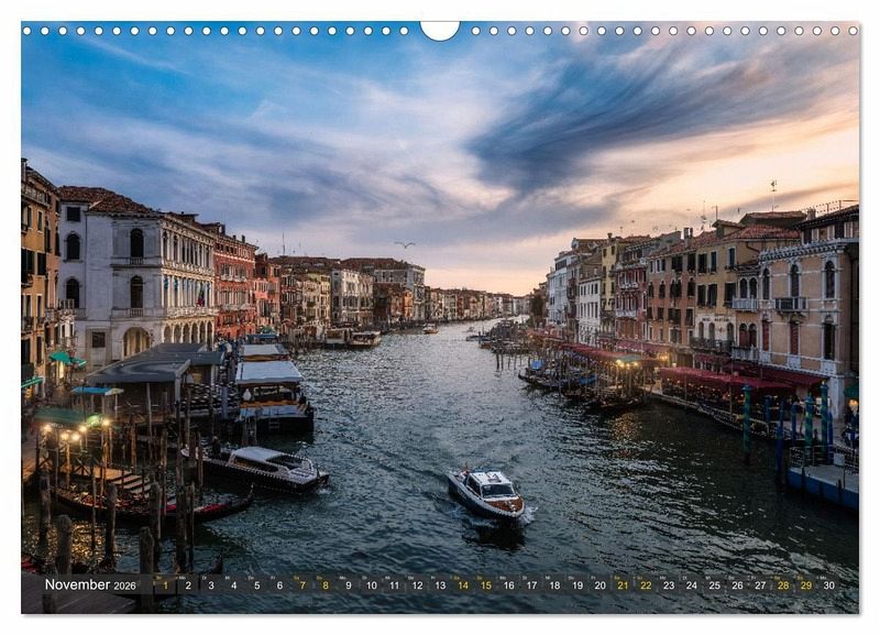 Dieser Kalender fängt die einzigartige Schönheit Venedigs in besonderem Licht ein. Jedes Monatsblatt zeigt die berühmten Kanäle, romantischen Gassen und pittoreske Architektur dieser bezaubernden Stadt.
