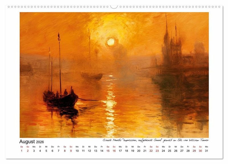 August: Claude Monets "Impression, aufgehende Sonne" gemalt im Stil von William Turner