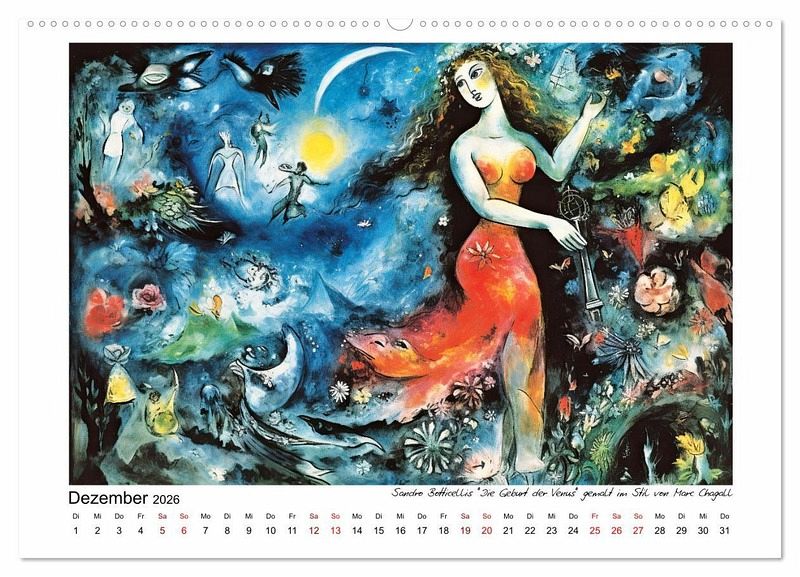 Dezember: Sandro Botticellis "Die Geburt der Venus" gemalt im Stil von Marc Chagall
