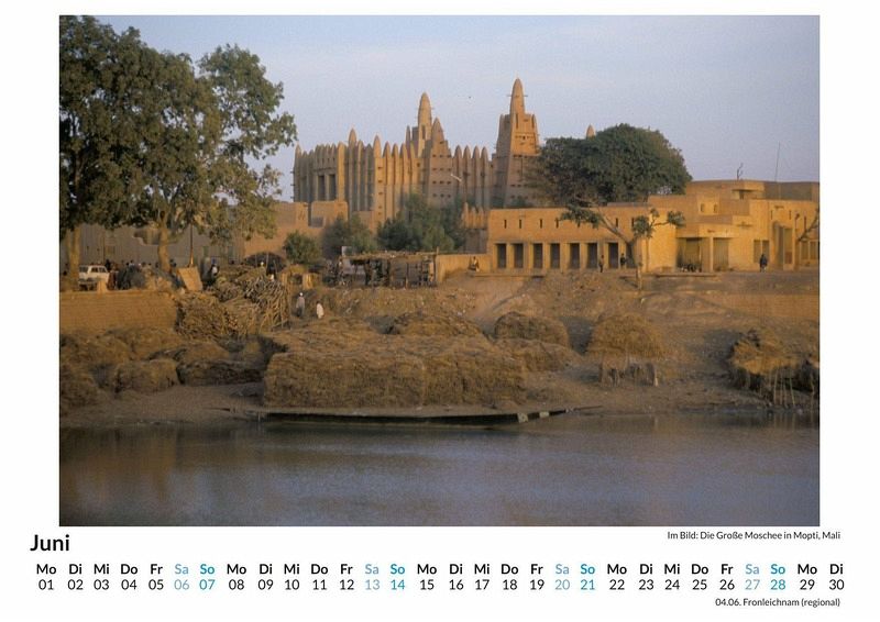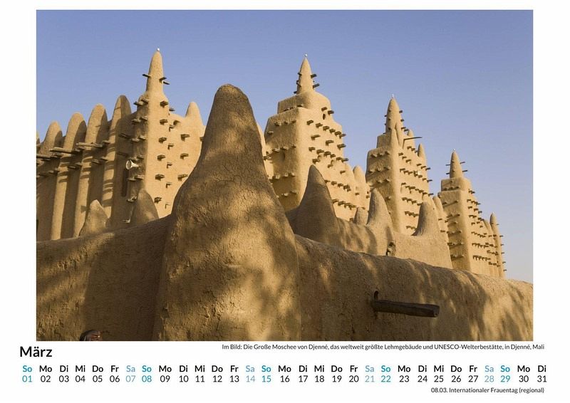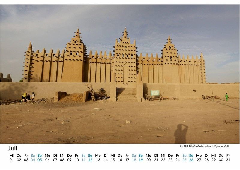 Entdecken Sie die faszinierende Schönheit Malis mit unserem exklusiven Wandkalender! Lassen Sie sich Monat für Monat von 12 atemberaubenden Motiven verzaubern, die die kulturelle Vielfalt und die beeindruckenden Landschaften dieses einzigartigen Landes einfangen. Gedruckt auf hochwertigem, lichtbeständigem Bilderdruckpapier, garantieren die brillanten Farben langanhaltende Freude. Nachhaltigkeit liegt uns am Herzen: Unsere Kalender werden in Deutschland auf FSC-zertifiziertem Papier produziert. Perfekt für Ihr Zuhause oder als Geschenk - holen Sie sich ein Stück Mali an Ihre Wand und lassen Sie sich täglich inspirieren! Jetzt bestellen und das Fernweh stillen! Hochwertig Erleben Sie ein Jahr voller Eleganz mit unserem Premium-Fotokalender. Jedes der 12 Motive ist auf hochwertigem, lichtbeständigem Bilderdruckpapier gedruckt, um die Lebendigkeit jedes Bildes zu bewahren. Die robuste Spiralbindung gewährleistet Langlebigkeit und einfache Handhabung. Nachhaltig Unser Engagement für die Umwelt spiegelt sich in jedem Exemplar wider. Durch die Produktion auf Abruf reduzieren wir signifikant unseren Abfall. Wir verwenden ausschließlich umweltfreundliches, FSC-zertifiziertes Papier. Stolz gefertigt in Deutschland, achten wir bei unserer Logistik auf Klimaschutz, um unseren ökologischen Fußabdruck zu minimieren. Das ideale Geschenk Dieser Kalender ist das perfekte Präsent für jeden Anlass - ob Weihnachten, Geburtstage oder einfach als liebevolle Aufmerksamkeit zwischendurch. Geeignet für Freunde, Familie, Kinder und Erwachsene gleichermaßen, bereichert er jedes Zuhause mit seiner Vielfalt und Schönheit, unabhängig vom Alter der Beschenkten.