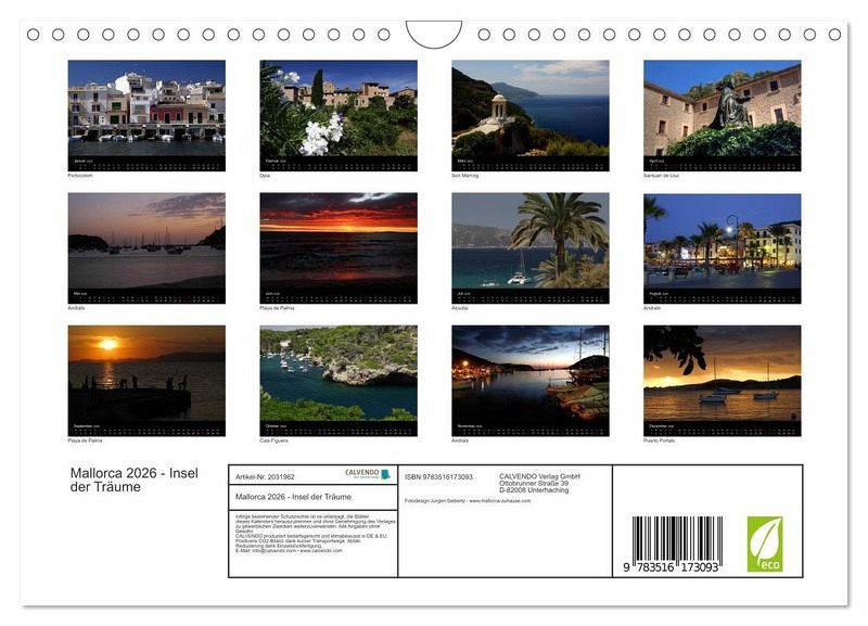 QUALITÄT - Hochwertiger Fotokalender mit 12 wunderschönen Motiven auf lichtbeständigem Bilderdruckpapier, robuste Spiralbindung mit Aufhängebügel.NACHHALTIG - deutliche Abfallreduzierung durch bedarfsgerechte Einzelstückfertigung, umweltfreundliches FSC-zertifiziertes Papier, Produktion in Deutschland, klimabewusste Logistik.PERFEKTES GESCHENK - Kalender für Freunde und Familie, für Kinder und Erwachsene, jung und alt, zu Weihnachten, Geburtstag oder zwischendurch.VIELFALT - Bildkalender in verschiedenen Formaten, z.B. DIN A5, DIN A4, DIN A3 sowie DIN A2. Ob Naturmotiv, Gemälde oder Fotos, ideal für ein persönliches Wohlfühlambiente.Wundervolle Bilder der Insel Mallorca als Kalender für das neue Jahr von Autor(in): jseibertz