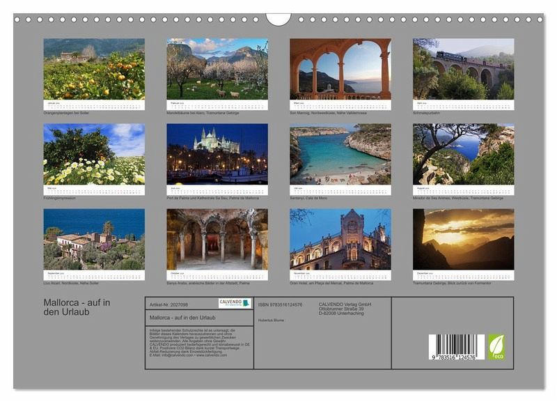 QUALITÄT - Hochwertiger Fotokalender mit 12 wunderschönen Motiven auf lichtbeständigem Bilderdruckpapier, robuste Spiralbindung mit Aufhängebügel.NACHHALTIG - deutliche Abfallreduzierung durch bedarfsgerechte Einzelstückfertigung, umweltfreundliches FSC-zertifiziertes Papier, Produktion in Deutschland, klimabewusste Logistik.PERFEKTES GESCHENK - Kalender für Freunde und Familie, für Kinder und Erwachsene, jung und alt, zu Weihnachten, Geburtstag oder zwischendurch.VIELFALT - Bildkalender in verschiedenen Formaten, z.B. DIN A5, DIN A4, DIN A3 sowie DIN A2. Ob Naturmotiv, Gemälde oder Fotos, ideal für ein persönliches Wohlfühlambiente.Die Highlights von Mallorca über die Jahreszeiten begleitet von Autor(in): Hubertus Blume