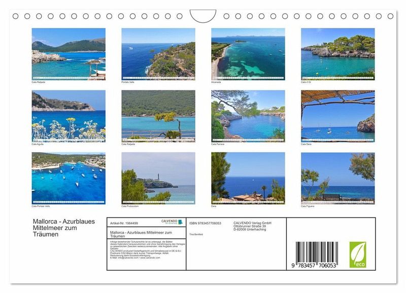 QUALITÄT - Hochwertiger Fotokalender mit 12 wunderschönen Motiven auf lichtbeständigem Bilderdruckpapier, robuste Spiralbindung mit Aufhängebügel.NACHHALTIG - deutliche Abfallreduzierung durch bedarfsgerechte Einzelstückfertigung, umweltfreundliches FSC-zertifiziertes Papier, Produktion in Deutschland, klimabewusste Logistik.PERFEKTES GESCHENK - Kalender für Freunde und Familie, für Kinder und Erwachsene, jung und alt, zu Weihnachten, Geburtstag oder zwischendurch.VIELFALT - Bildkalender in verschiedenen Formaten, z.B. DIN A5, DIN A4, DIN A3 sowie DIN A2. Ob Naturmotiv, Gemälde oder Fotos, idealfür ein persönliches Wohlfühlambiente.Mallorcas schönste Buchten und Küsten von Autor(in): tina bentfeld