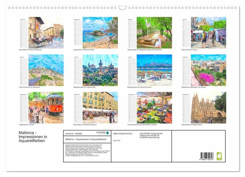 QUALITÄT - Hochwertiger Fotokalender mit 12 wunderschönen Motiven auf lichtbeständigem Bilderdruckpapier, robuste Spiralbindung mit Aufhängebügel.NACHHALTIG - deutliche Abfallreduzierung durch bedarfsgerechte Einzelstückfertigung, umweltfreundliches FSC-zertifiziertes Papier, Produktion in Deutschland, klimabewusste Logistik.PERFEKTES GESCHENK - Kalender für Freunde und Familie, für Kinder und Erwachsene, jung und alt, zu Weihnachten, Geburtstag oder zwischendurch.VIELFALT - Bildkalender in verschiedenen Formaten, z.B. DIN A5, DIN A4, DIN A3 sowie DIN A2. Ob Naturmotiv, Gemälde oder Fotos, ideal für ein persönliches Wohlfühlambiente.Illustrierte Ansichten der sonnigen Baleareninsel von Autor(in): Anja Frost