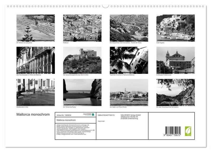 PREMIUM-LINIE - Brillanter Fotokalender mit 12 wunderschönen Motiven, Kunstdruck in Hochglanz in Museumsqualität.QUALITÄT - edle Materialien, stabile Rückwand mit 2 innovativen Einstecktaschen für eine optimale Präsentation an der Wand.NACHHALTIG - deutliche Abfallreduzierung durch bedarfsgerechte Einzelstückfertigung, umweltfreundliches FSC-zertifiziertes Papier, Produktion in Deutschland, klimabewusste Logistik.PERFEKTES GESCHENK - Kalender für Freunde und Familie, für Kinder und Erwachsene, jung und alt, zu Weihnachten, Geburtstag oder zwischendurch.Ausgesuchte Bilder der Baleareninsel in monochrom von Autor(in): Marcel Liebig