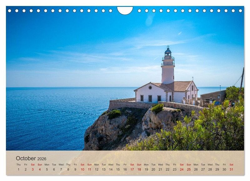 Explore the captivating allure of Mallorca's landscapes through our stunning calendar. Featuring diverse images ranging from charming towns to majestic cliffs and iconic lighthouses, each month offers a new visual delight. This collection showcases how Mallorca has much more to offer than just parties and mass tourism, transporting your senses to this Mediterranean gem from the comfort of your home or office. Ideal for Mallorca enthusiasts or as a thoughtful gift.