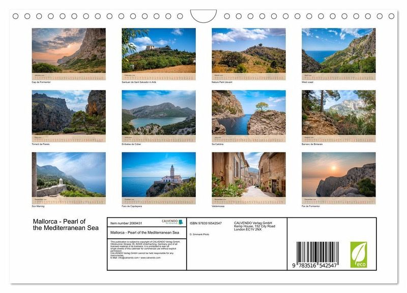QUALITY - High-quality photo calendar with 12 beautiful images on light-resistant paper, robust spiral binding with hanger.SUSTAINABLE - Significant waste reduction due to print-on-demand production, environmentally friendly FSC-certified paper, produced in the UK, climate-conscious logistical processes.PERFECT GIFT - calendars for friends and family, for children, all ages and all occasions, from Christmas to birthdays and everything in between.LOTS OF CHOICE - Wall calendars in different sizes (DIN A4 and DIN A3), for any topic and personal taste, featuring photography, painting and illustrations.This calendar captures Mallorca's essence beyond parties and mass tourism, featuring diverse landscapes that invite exploration., author: Daniel Simmank