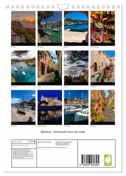 Ein exklusiver Kalender mit neuen und anderen Bildern der Insel Mallorca im Hochformat. Das Anschauen der Bilder gibt Ihnen Monat für Monat das Gefühl, Mallorca zuhause zu haben.