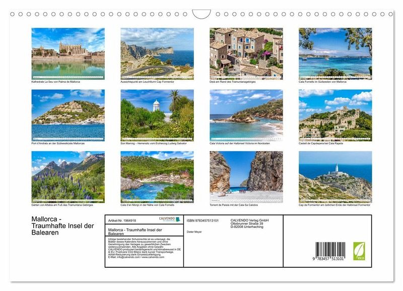 QUALITÄT - Hochwertiger Fotokalender mit 12 wunderschönen Motiven auf lichtbeständigem Bilderdruckpapier, robuste Spiralbindung mit Aufhängebügel.NACHHALTIG - deutliche Abfallreduzierung durch bedarfsgerechte Einzelstückfertigung, umweltfreundliches FSC-zertifiziertes Papier, Produktion in Deutschland, klimabewusste Logistik.PERFEKTES GESCHENK - Kalender für Freunde und Familie, für Kinder und Erwachsene, jung und alt, zu Weihnachten, Geburtstag oder zwischendurch.VIELFALT - Bildkalender in verschiedenen Formaten, z.B. DIN A5, DIN A4, DIN A3 sowie DIN A2. Ob Naturmotiv, Gemälde oder Fotos, ideal für ein persönliches Wohlfühlambiente.Impressionen von der spanischen Trauminsel Mallorca. von Autor(in): Dieter Meyer