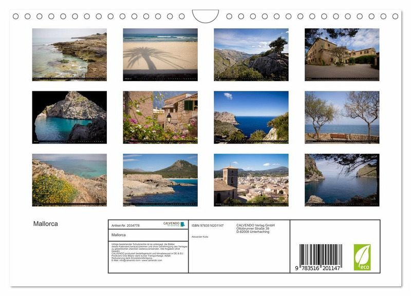 QUALITÄT - Hochwertiger Fotokalender mit 12 wunderschönen Motiven auf lichtbeständigem Bilderdruckpapier, robuste Spiralbindung mit Aufhängebügel.NACHHALTIG- deutliche Abfallreduzierung durch bedarfsgerechte Einzelstückfertigung, umweltfreundliches FSC-zertifiziertes Papier, Produktion in Deutschland, klimabewusste Logistik.PERFEKTES GESCHENK - Kalender für Freunde und Familie, für Kinder und Erwachsene, jung und alt, zu Weihnachten, Geburtstag oder zwischendurch.VIELFALT - Bildkalender in verschiedenen Formaten, z.B. DIN A5, DIN A4, DIN A3 sowie DIN A2. Ob Naturmotiv, Gemälde oder Fotos, ideal für ein persönliches Wohlfühlambiente.Mallorca - Bilder abseits von Ballermann und Co. von Autor(in): Alexander Kulla
