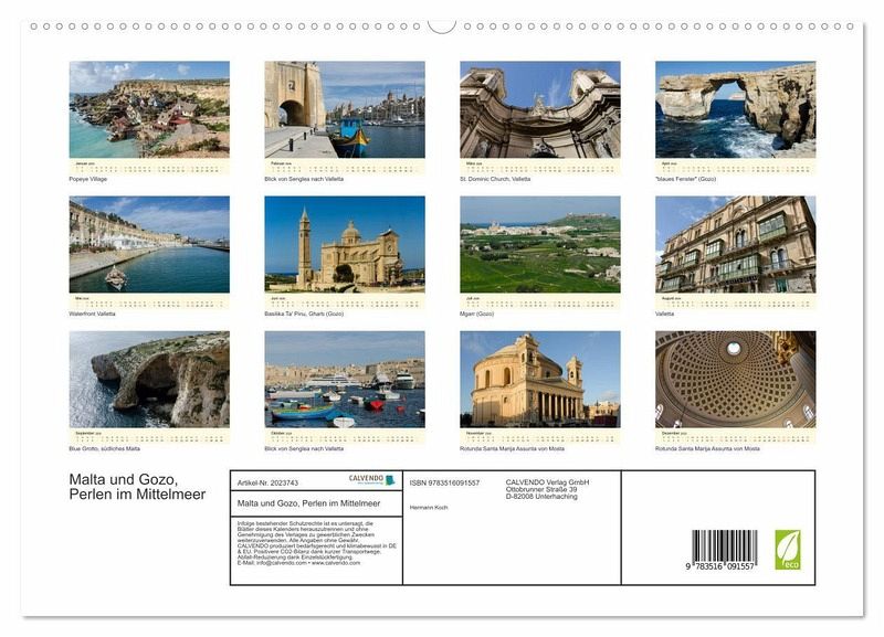 PREMIUM-LINIE - Brillanter Fotokalender mit 12 wunderschönen Motiven, Kunstdruck in Hochglanz in Museumsqualität.QUALITÄT - edle Materialien, stabile Rückwand mit 2 innovativen Einstecktaschen für eine optimale Präsentation an der Wand.NACHHALTIG - deutliche Abfallreduzierung durch bedarfsgerechte Einzelstückfertigung, umweltfreundliches FSC-zertifiziertes Papier, Produktion in Deutschland, klimabewusste Logistik.PERFEKTES GESCHENK - Kalender für Freunde und Familie, für Kinder und Erwachsene, jung und alt, zu Weihnachten, Geburtstag oder zwischendurch.Bilder einer Reise nach Malta und Gozo von Autor(in): Hermann Koch
