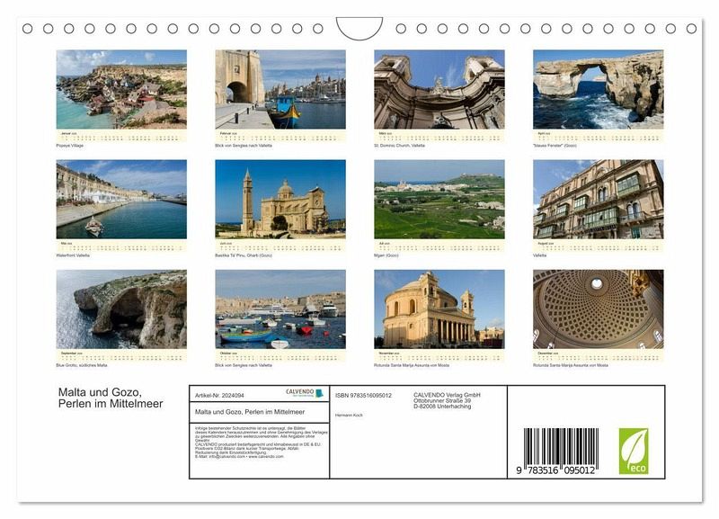 QUALITÄT - Hochwertiger Fotokalender mit 12 wunderschönen Motiven auf lichtbeständigem Bilderdruckpapier, robuste Spiralbindung mit Aufhängebügel.NACHHALTIG - deutliche Abfallreduzierung durch bedarfsgerechte Einzelstückfertigung, umweltfreundliches FSC-zertifiziertes Papier, Produktion in Deutschland, klimabewusste Logistik.PERFEKTES GESCHENK - Kalender für Freunde und Familie, für Kinder und Erwachsene, jung und alt, zu Weihnachten, Geburtstag oder zwischendurch.VIELFALT - Bildkalender in verschiedenen Formaten, z.B. DIN A5, DIN A4, DIN A3 sowie DIN A2. Ob Naturmotiv, Gemälde oder Fotos, ideal für ein persönliches Wohlfühlambiente.Bilder einer Reise nach Malta und Gozo von Autor(in): Hermann Koch