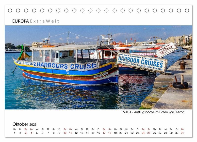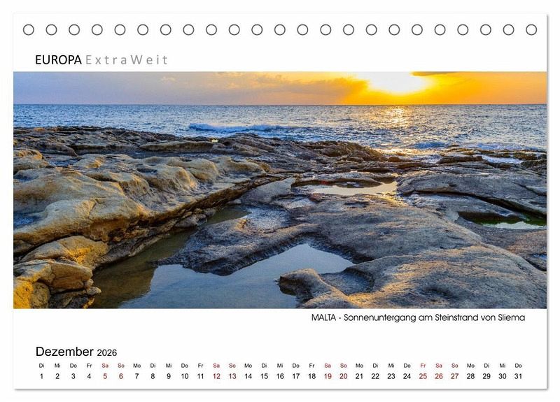 In der Kalenderserie von Dieter-M. Wilczek "EUROPA Extra Weit" zeigt der Erlebnisfotograf die faszinierenden Städte & Landschaften Europas in besonders ausdrucksstarken Panoramabildern. Wie seine Aufnahmen belegen, hat der Inselstaat Malta seinen ganz eigenen unwiderstehlichen Charme. Lassen Sie sich begeistern und holen Sie sich ein Stück mediterranes Flair nach Hause.
