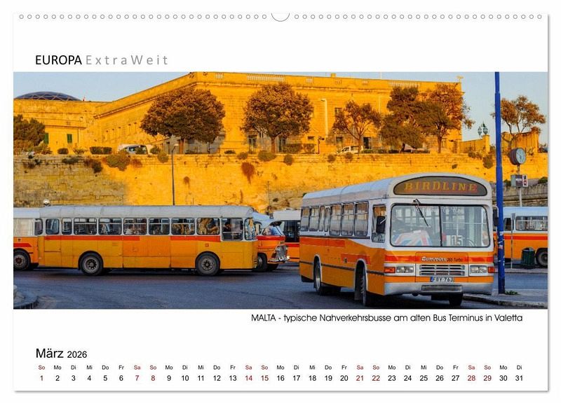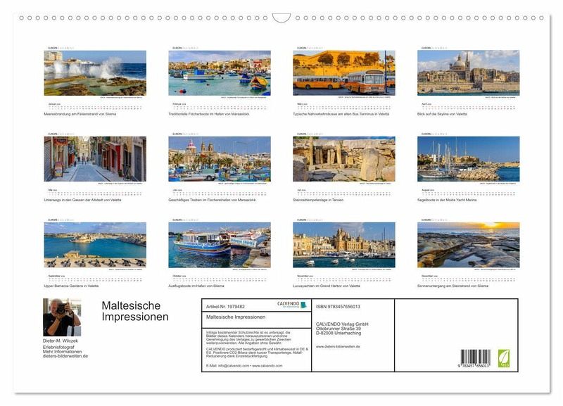 In der Kalenderserie von Dieter-M. Wilczek "EUROPA Extra Weit" zeigt der Erlebnisfotograf die faszinierenden Städte & Landschaften Europas in besonders ausdrucksstarken Panoramabildern. Wie seine Aufnahmen belegen, hat der Inselstaat Malta seinen ganz eigenen unwiderstehlichen Charme. Lassen Sie sich begeistern und holen Sie sich ein Stück mediterranes Flair nach Hause.