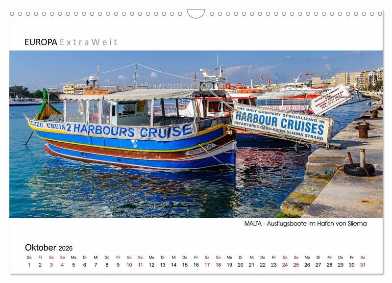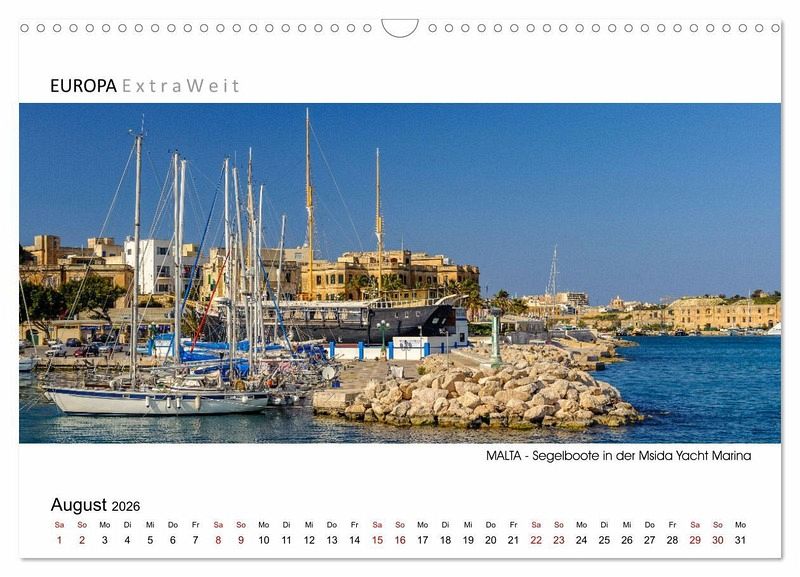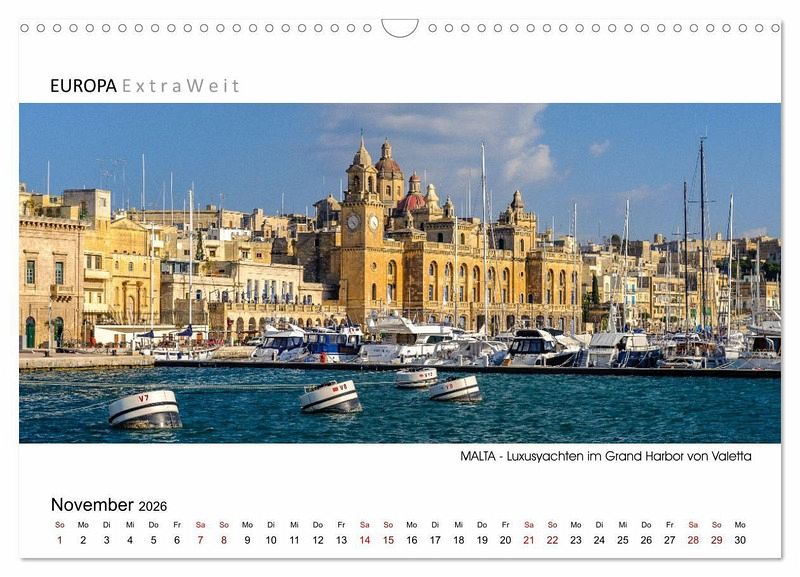 In der Kalenderserie von Dieter-M. Wilczek "EUROPA Extra Weit" zeigt der Erlebnisfotograf die faszinierenden Städte & Landschaften Europas in besonders ausdrucksstarken Panoramabildern. Wie seine Aufnahmen belegen, hat der Inselstaat Malta seinen ganz eigenen unwiderstehlichen Charme. Lassen Sie sich begeistern und holen Sie sich ein Stück mediterranes Flair nach Hause.