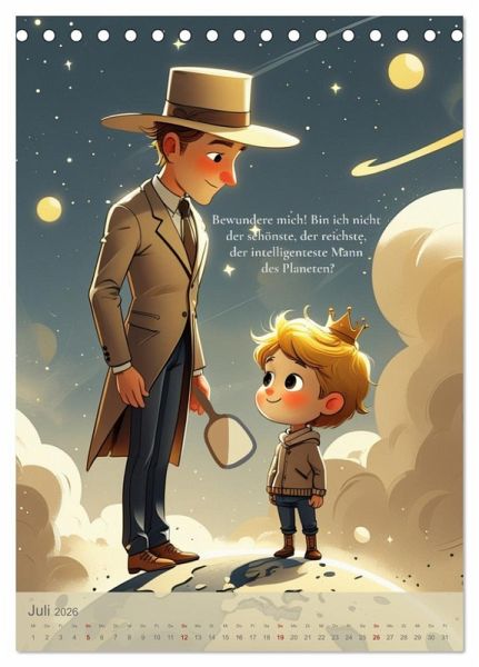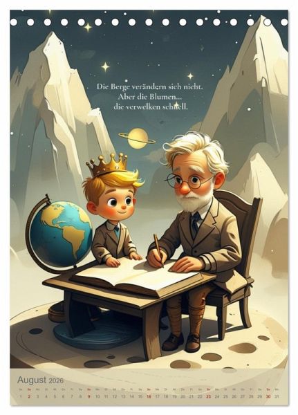 Dieser Kalender erzählt in zwölf zauberhaften Bildern eine stille Reise durch das Jahr - inspiriert von der Welt des kleinen Prinzen. Die liebevoll illustrierten Szenen zeigen Begegnungen, Weisheiten und Abschiede, die berühren und zum Nachdenken anregen. Jedes Kalenderblatt ist mit einem Zitat versehen, das Herz und Verstand anspricht. Ein besonderer Begleiter für alle, die sich an das Wesentliche erinnern möchten - und an das, was nur mit dem Herzen sichtbar ist. Der Kalender ist mit Unterstützung von KI entstanden.