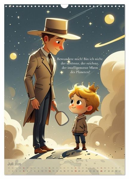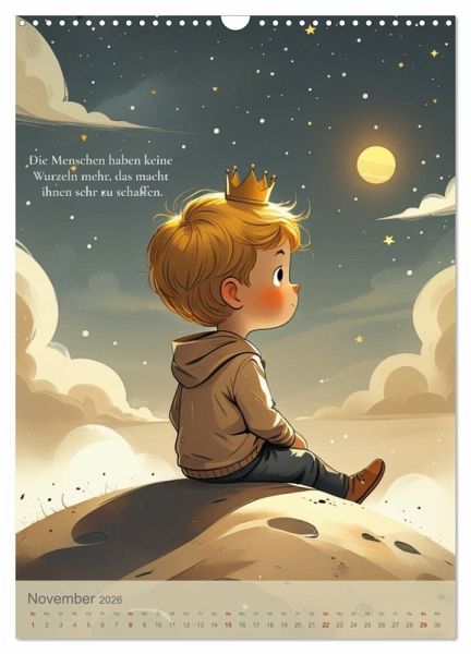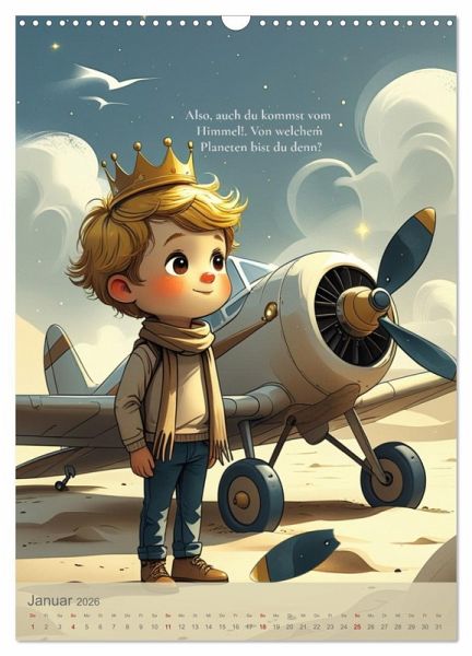 Dieser Kalender erzählt in zwölf zauberhaften Bildern eine stille Reise durch das Jahr - inspiriert von der Welt des kleinen Prinzen. Die liebevoll illustrierten Szenen zeigen Begegnungen, Weisheiten und Abschiede, die berühren und zum Nachdenken anregen. Jedes Kalenderblatt ist mit einem Zitat versehen, das Herz und Verstand anspricht. Ein besonderer Begleiter für alle, die sich an das Wesentliche erinnern möchten - und an das, was nur mit dem Herzen sichtbar ist. Der Kalender ist mit Unterstützung von KI entstanden.