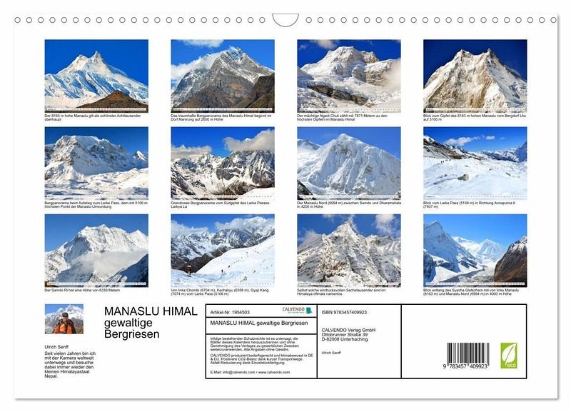 QUALITÄT - Hochwertiger Fotokalender mit 12 wunderschönen Motiven auf lichtbeständigem Bilderdruckpapier, robuste Spiralbindung mit Aufhängebügel.NACHHALTIG - deutliche Abfallreduzierung durch bedarfsgerechte Einzelstückfertigung, umweltfreundliches FSC-zertifiziertes Papier, Produktion in Deutschland, klimabewusste Logistik.PERFEKTES GESCHENK - Kalender für Freunde und Familie, für Kinder und Erwachsene, jung und alt, zu Weihnachten, Geburtstag oder zwischendurch.VIELFALT - Bildkalender in verschiedenen Formaten, z.B. DIN A5, DIN A4, DIN A3 sowie DIN A2. Ob Naturmotiv, Gemälde oder Fotos, ideal für ein persönliches Wohlfühlambiente.Bilder von grandiosen Bergen in der einzigartigen Himalayaregion rund um den 8163 m hohen Manaslu. von Autor(in): Ulrich Senff