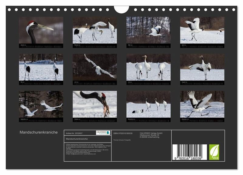 QUALITÄT - Hochwertiger Fotokalender mit 12 wunderschönen Motiven auf lichtbeständigem Bilderdruckpapier, robuste Spiralbindung mit Aufhängebügel.NACHHALTIG - deutliche Abfallreduzierung durch bedarfsgerechte Einzelstückfertigung, umweltfreundliches FSC-zertifiziertes Papier, Produktion in Deutschland, klimabewusste Logistik.PERFEKTES GESCHENK - Kalender für Freunde und Familie, für Kinder und Erwachsene, jung und alt, zu Weihnachten, Geburtstag oder zwischendurch.VIELFALT - Bildkalender in verschiedenen Formaten, z.B. DIN A5, DIN A4, DIN A3 sowie DIN A2. Ob Naturmotiv, Gemälde oder Fotos, ideal für ein persönliches Wohlfühlambiente.Mandschurenkraniche in ihrer natürlichen Umgebung. von Autor(in): Thomas Schwarz