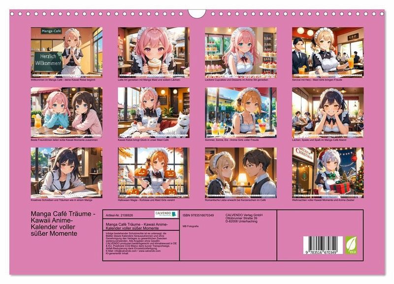 QUALITÄT - Hochwertiger Fotokalender mit 12 wunderschönen Motiven auf lichtbeständigem Bilderdruckpapier, robuste Spiralbindung mit Aufhängebügel.NACHHALTIG - deutliche Abfallreduzierung durch bedarfsgerechte Einzelstückfertigung, umweltfreundliches FSC-zertifiziertes Papier, Produktion in Deutschland, klimabewusste Logistik.PERFEKTES GESCHENK - Kalender für Freunde und Familie, für Kinder und Erwachsene, jung und alt, zu Weihnachten, Geburtstag oder zwischendurch.VIELFALT - Bildkalender in verschiedenen Formaten, z.B. DIN A5, DIN A4, DIN A3 sowie DIN A2. Ob Naturmotiv, Gemälde oder Fotos, ideal für ein persönliches Wohlfühlambiente.Süße Manga- und Anime-Momente im Kawaii Maid Café. Liebevoll illustrierte Szenen mit Freundschaft, Romantik, Katzen, Sommer, Halloween und Weihnachten - ein Jahr voller Gefühle für Anime-Fans von Autor(in): Michael Bihlmayer