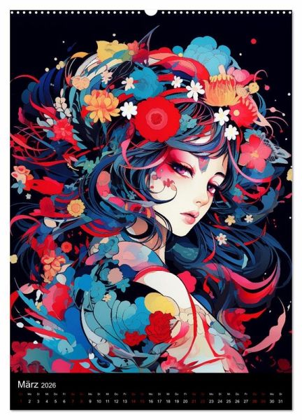 Willkommen in der bezaubernden Welt von "Manga Flower Girls"! Unser Kalender entführt dich in die Schönheit japanischer Manga-Designs, wo kunstvoll gestaltete Charaktere vor einem Farbrausch bunter Hintergründe erstrahlen. Jeder Monat präsentiert einzigartige Gesichter japanischer Frauen, eingebettet in die Magie von blühenden Blumen und lebendigen Farben.