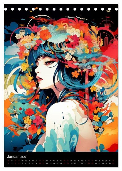 Willkommen in der bezaubernden Welt von "Manga Flower Girls"! Unser Kalender entführt dich in die Schönheit japanischer Manga-Designs, wo kunstvoll gestaltete Charaktere vor einem Farbrausch bunter Hintergründe erstrahlen. Jeder Monat präsentiert einzigartige Gesichter japanischer Frauen, eingebettet in die Magie von blühenden Blumen und lebendigen Farben.